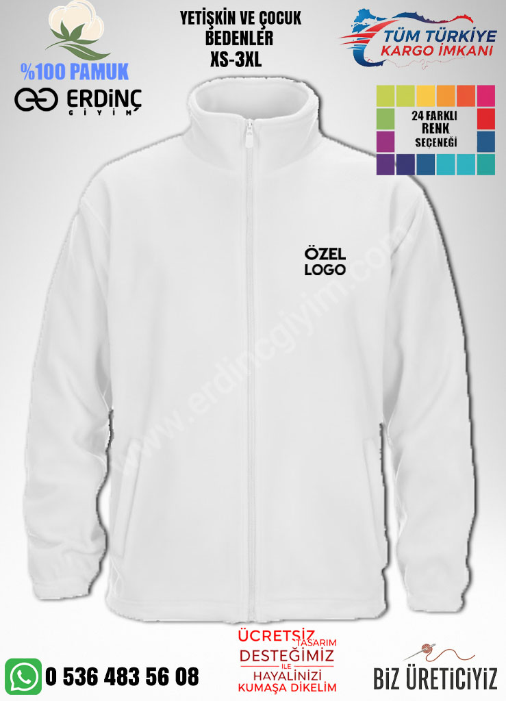 Düzce’de baskısız beyaz polar mont ve hırkaların toptan imalatı.