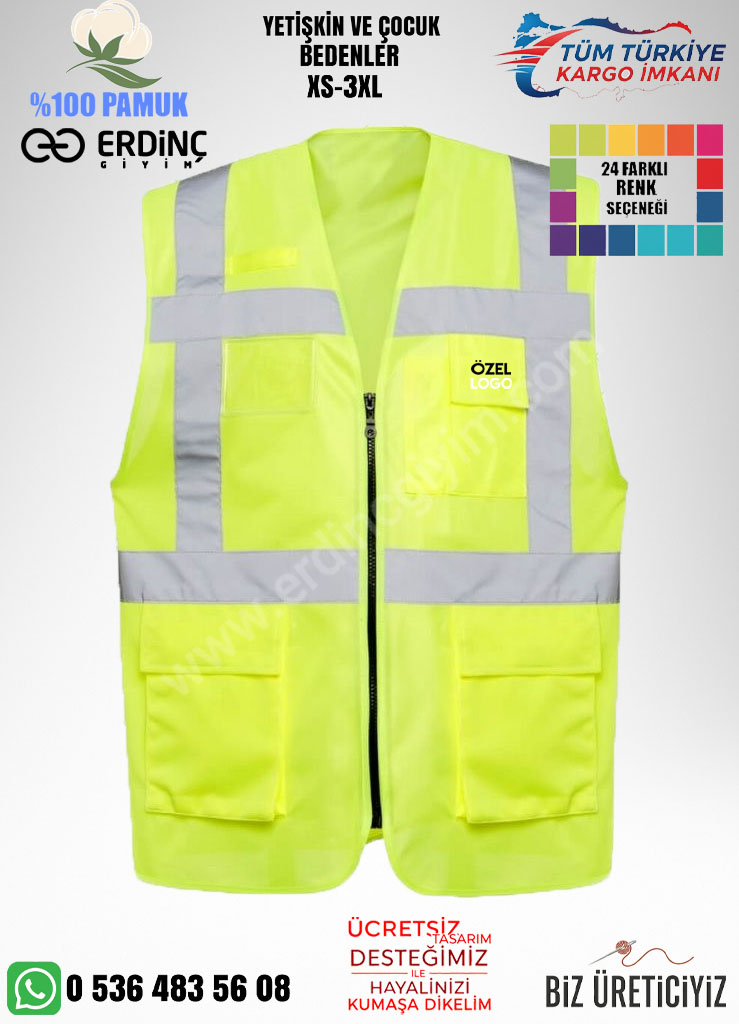 Erdinç Giyim ikaz yelekleri; inşaat, yol çalışmaları, lojistik, depo, belediye ve sanayi alanlarında kullanıma uygun olarak üretilmektedir.