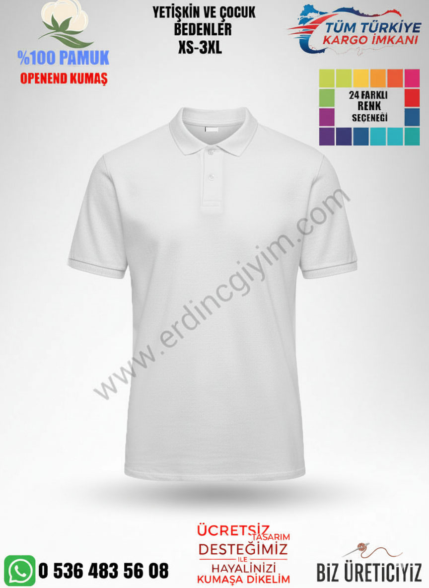 Erdinç Giyim olarak, Antalya‘daki işletmelere özel toptan polo yaka iş tişörtü imalatı yapıyoruz. Promosyon ve personel kıyafeti olarak sıkça tercih edilen polo yaka tişörtler, yakalı ve düğmeli yapısıyla daha şık ve profesyonel bir görünüm sunar. Dayanıklı kumaşı ve baskı kolaylığı sayesinde, firmanız için kurumsal kimliğinizi yansıtan etkili bir kıyafettir.